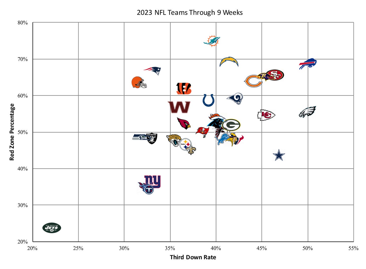 Want to see the Jets third down and red zone offence horror show in context…of course you do…